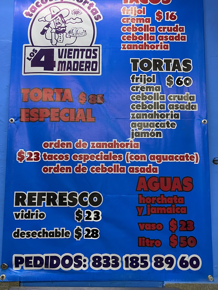 Welcome to Tacos Y Tortas Los 4 Vientos Madero, a culinary gem nestled in Cd Madero, Mexico. Located at C. Niños Héroes 704A, this vibrant eatery offers an enticing menu designed to satisfy both taco and torta enthusiasts.